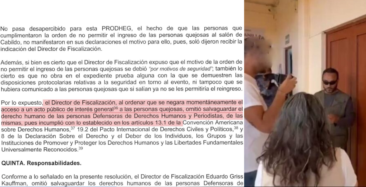 Sobre la resolución de la PRODHEG, en la que Griss Kauffman fue señalado como responsable de violentar los derechos humanos de los periodistas, Ramírez Sánchez declaró que no existe conflicto alguno y reiteró que no hubo violaciones a derechos humanos.