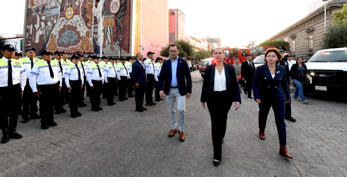 IRAPUATO, GTO. A 20 DE OCTUBRE 2025.- Hoy, durante el pase de lista a policías, tránsitos, bomberos, personal de Protección Civil y de otras áreas de seguridad de Irapuato, la alcaldesa, Lorena Alfaro García, presentó a la primer mujer al frente de la Secretaría de Seguridad Ciudadana, María del Consuelo Cruz Galindo.