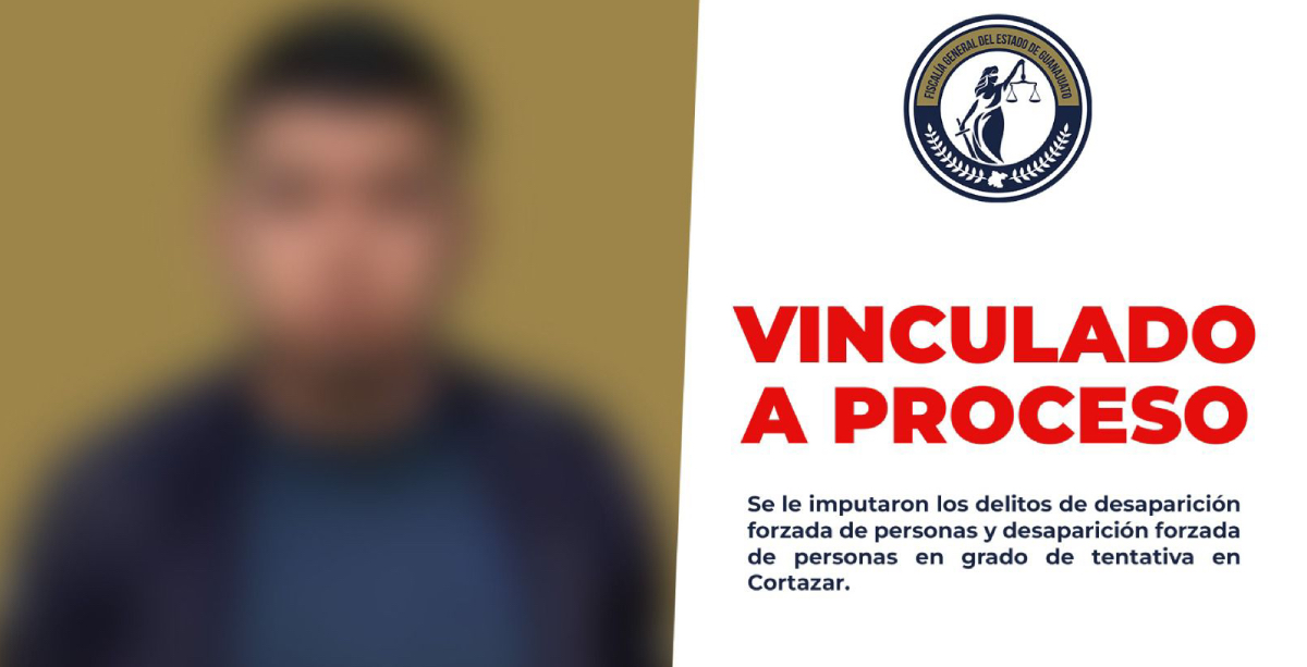 La Fiscalía General del Estado informó que fue capturado y vinculado como presunto responsable de la desaparición forzada de cinco personas en el municipio de Cortazar, ocurrida la madrugada del 7 de septiembre del presente año.